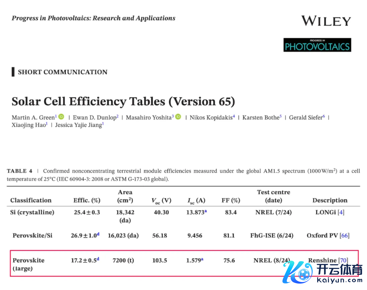 上證報中國證券網訊(記者王玉晴)“光伏新勢力”仁爍光能11月22日文牘,仁爍光能量產的鈣鈦礦組件(尺寸1200mm*600mm)取得好意思國可再無邪力國度踐諾室(NREL)穩態效果測試認證,組件的全面積穩態效果達17.2%(對應靈驗面積效果19.3%),是商用鈣鈦礦組件寰球初度且現在行業惟一的海外泰斗認證。該效果寰宇記錄被最新一期《SolarCellEfficiencyTables》(Version65)(太陽能電板效果表第65版)收錄。