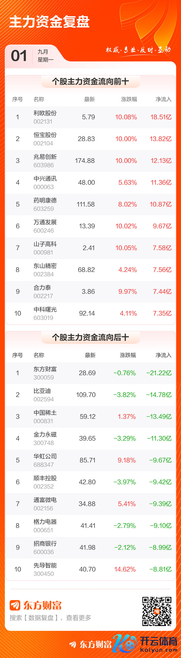 主力凈賣出個股中,東方金錢排行第一,主力凈賣出21.22億元;比亞迪排行第二,主力凈賣出14.78億元。